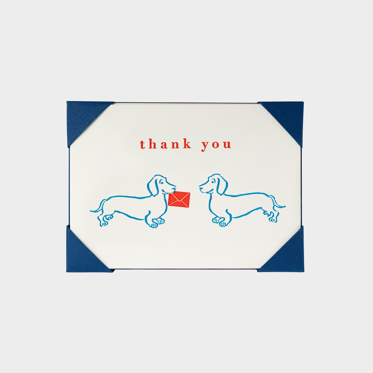 "Thank You" What's better then a sweet little sausage dog? Well, two sweet little sausage dogs of course... Especially when one is passing his dachsund doppleganger a note of appreciation. We wonder what it says? Perhaps artist Jason Falkner can tell us, or perhaps you can dream up your own interpretation on the blank pages within!Designed with the fabulous Jason Falkner