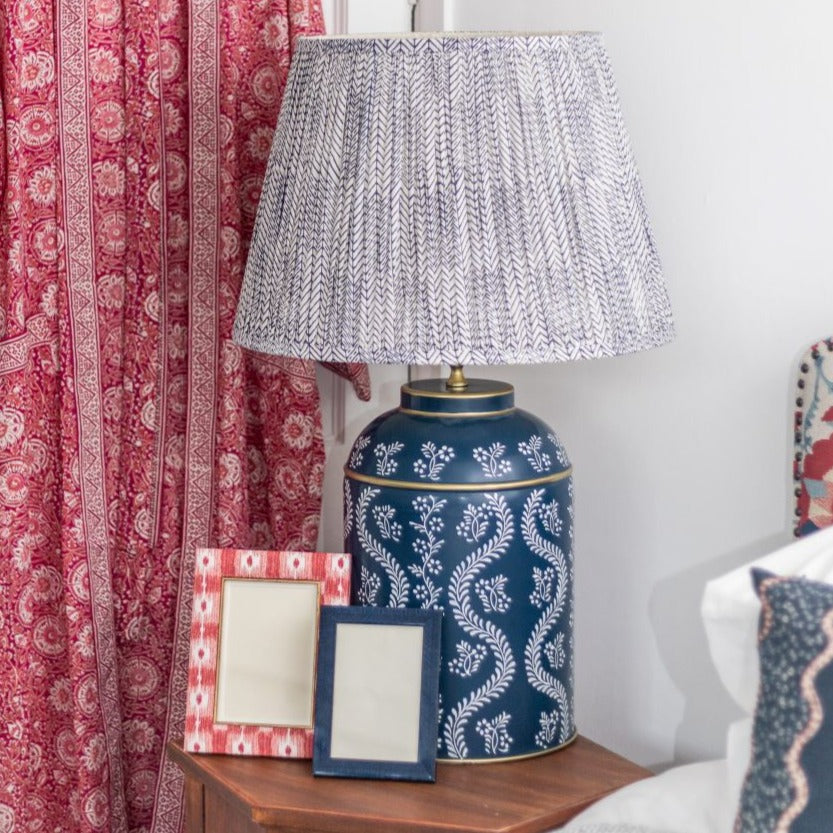 These beautiful tole lamps are a statement lamp hand painted in a stunning geometric design.